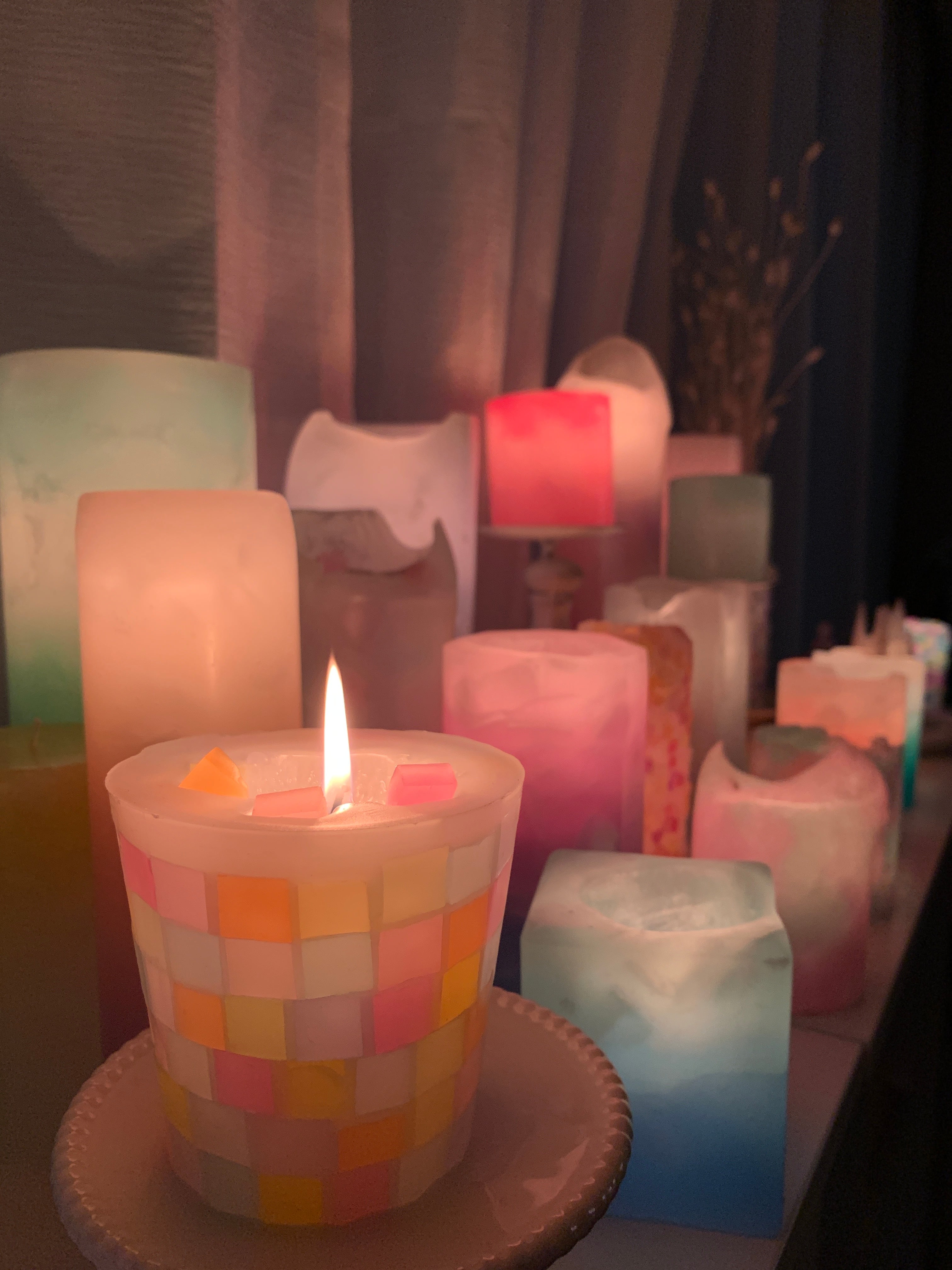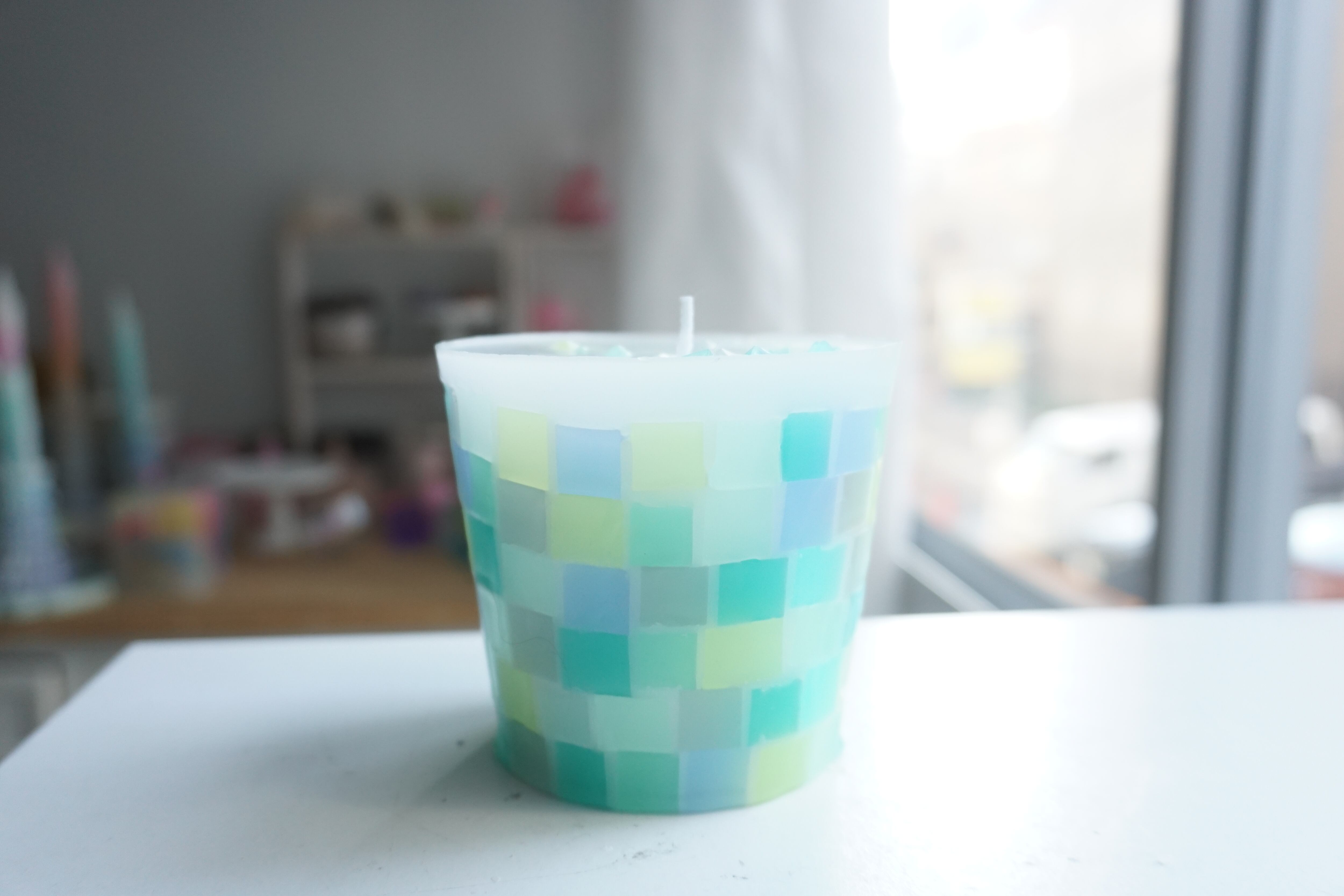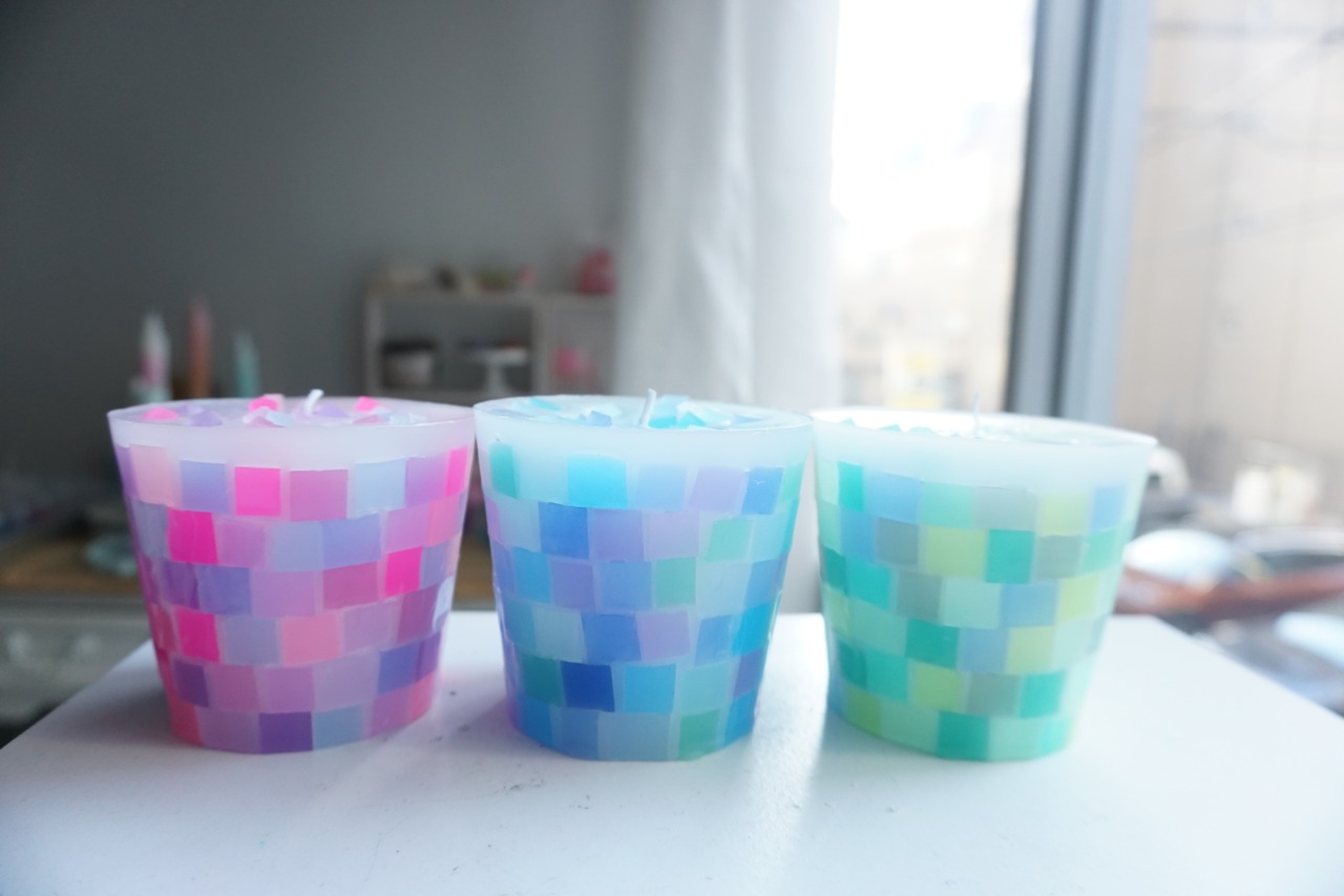 カラフルなブロックを積み上げたキャンドルです。