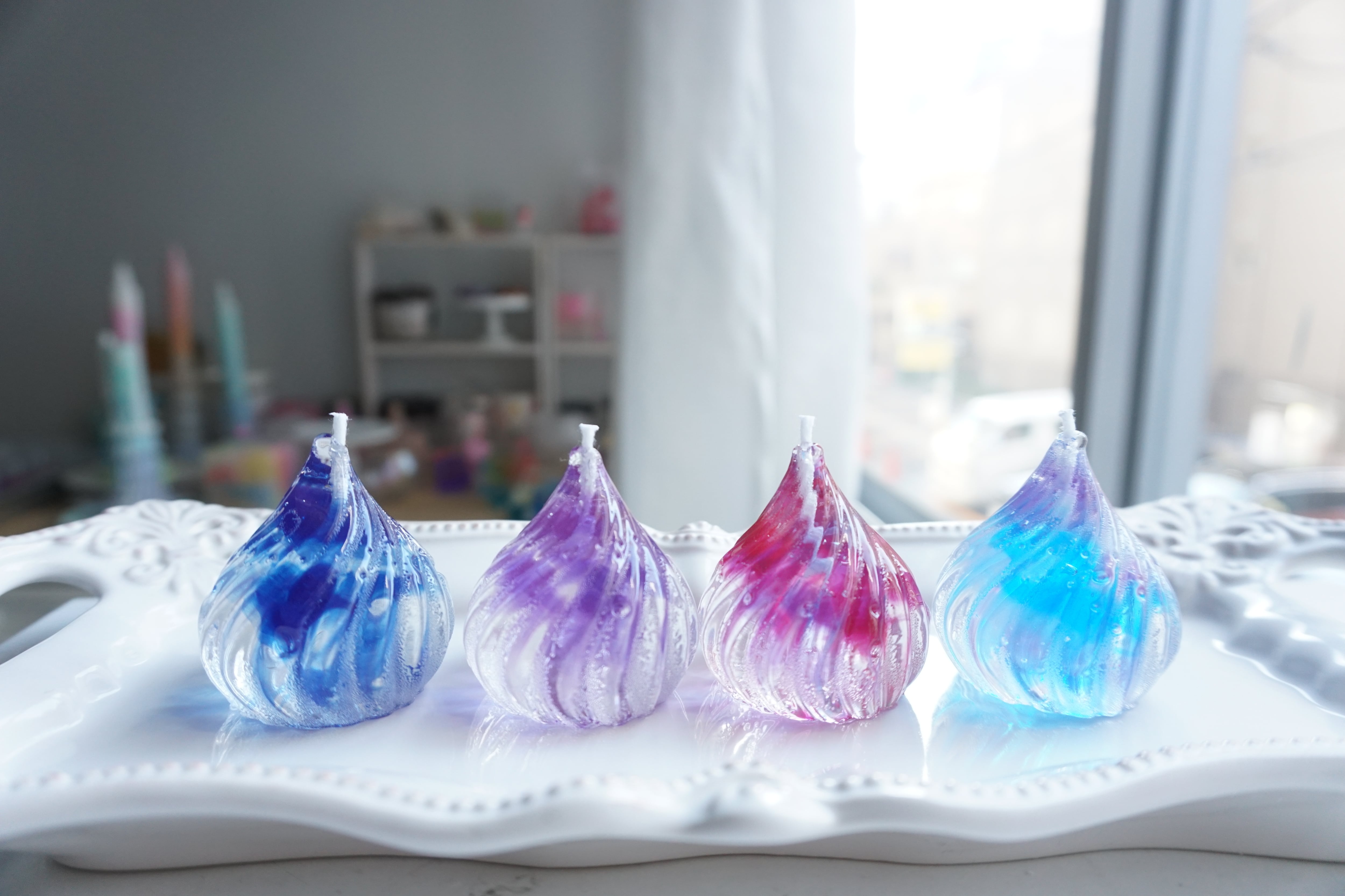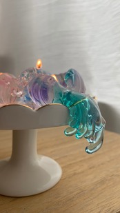 違う色を並べて灯すと、溶けたロウが混ざり合ってとてもきれいです☆